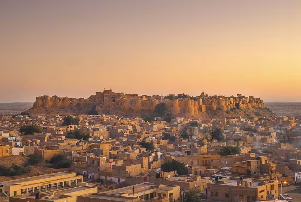 Bienvenido a Jaisalmer, la joya dorada de Rajasthan que emerge majestuosamente del desierto del Thar. Conocida por su impresionante arquitectura de piedra arenisca amarilla, fortalezas imponentes y dunas infinitas, Jaisalmer ofrece una experiencia única donde la historia, la cultura y la aventura se encuentran. Cada rincón de la ciudad refleja el legado de los antiguos reinos rajput y el encanto del desierto indio.