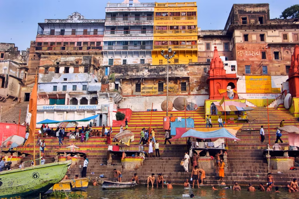 Varanasi es uno de los lugares más sagrados del hinduismo. Miles de peregrinos visitan la ciudad para bañarse en el río Ganges, considerado purificador, y para participar en ceremonias religiosas llenas de devoción y simbolismo.